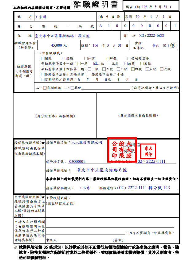 依《就業保險法》相關規定,若勞工欲申請失業給付或職訓補助,必須具備「非自願離職證明」。這份文件由雇主開立,載明離職原因與日期。